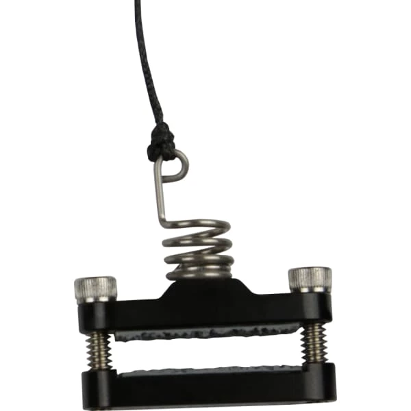 This clamp is best served on limbs that range in width from 0.85” to 1.0”. It is designed to be low weight and low profile, yet still serve as a true mechanical attachment mechanism for the dampening coil and cord to your rest. The dampening coil prevents the cord from stretching, acts as a shock absorber when the shot is fired and manages the launcher rebound. With the dual bracket and screws, even pressure is applied through the clamp system. The dampening coil is mounted to the lower clamp via a separate mounting screw. Couple this with a protective sticky tape and the clamp will not damage the finish of your limb and will not slip on the limb. This clamp works with the VersaRest as well as other manufacturers’ limb actuated style rests.