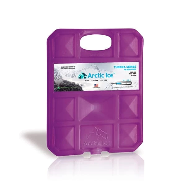 Arctic Ice™ Tundra Series has a very unique freezing point of 5°F and is designed to help maintain a consistent freezer temperature in coolers. While not as cold as dry ice, Tundra Series™ can be used as a suitable replacement – it has been shown to maintain frozen temperatures for days in controlled testing. Due to its low freezing point, Tundra Series™ can take from 18-36 hours to freeze, depending on the temperature of freezer and number of panels being frozen. To ensure Tundra Series™ panels are frozen, the freezer should be turned to its lowest setting or at least 0°F. It is recommended that Tundra Series™ be used to maintain frozen goods, i.e. ice cream, meats, fish, etc. Use weight equivalent to dry ice normally used for great, re-usable results. Store panels in freezer so they are ready when needed. Tundra Series panels are also top rack dishwasher safe!