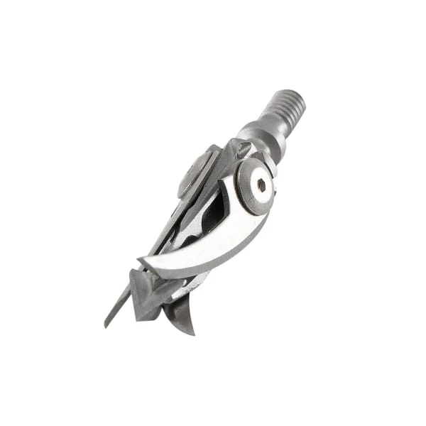 B3’s Exoskeletal Broadheads are stronger, straighter and superior — a patent-pending design built by archers and hunters, like you. The curved blades cut faster and penetrate longer. A combination of blades lying flat and a friction grommet under the blades eliminates external bands, and produces a quiet flight and field-tip accuracy. The pre-loaded blade angle is quick to deploy, and the head design features built-in stops for both closed and open positions, preventing arrow damage.