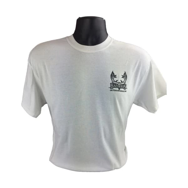 White T-Shirt that says: Nothing is Finer than Bowhunting at the Crack Of Dawn. Have some fun, get some comments on this creative shirt. Great for the bowhunter. Front left chest has small black Badass Outdoor Gear logo.