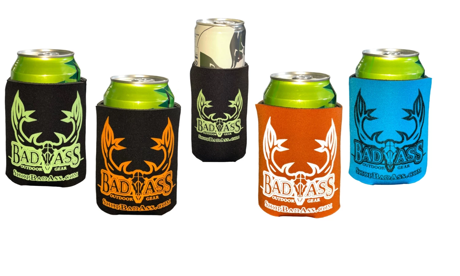 Badass Outdoor Gear logo Koozies keep your beverage cold and your hands warm. There is nothing worse than a warm beer in the summer or cold hands in the winter. Folds in half for easy storage and travel.