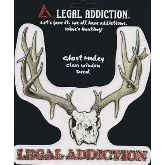 Legal Addiction clear window decal. Let’s face it, we all have addictions ….. mine’s hunting! Ghost Muley window decal.