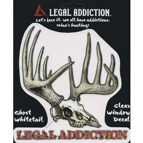 Legal Addiction clear window decal. Let’s face it, we all have addictions …. mine’s hunting! Ghost Whitetail window decal.