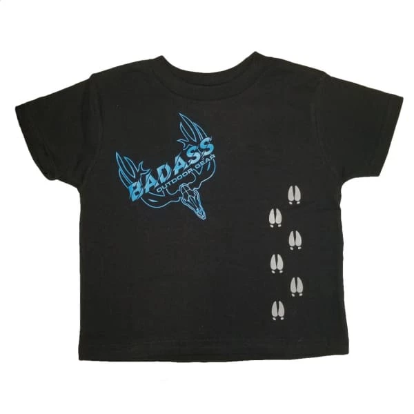 Badass Outdoor Gears new youth T-shirt sporting the Badass Logo with deer tracks on a 100% cotton T-shirt