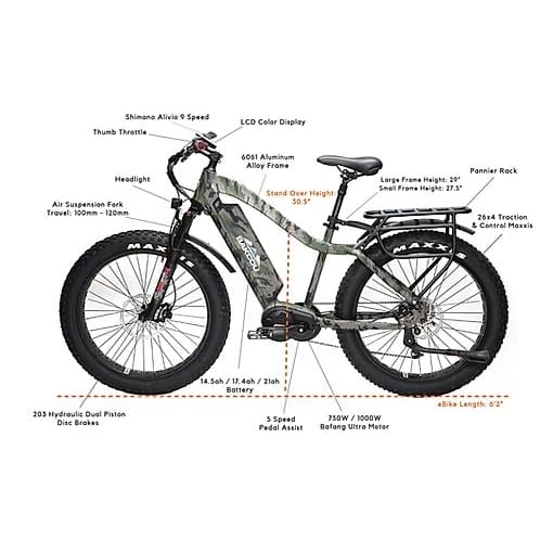 - Motor: Bafang Ultra M620 750w/1000w mid-drive Motor w/integrated Torque Sensor