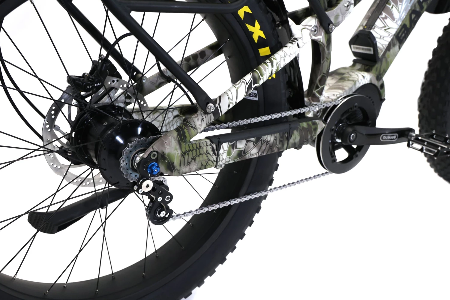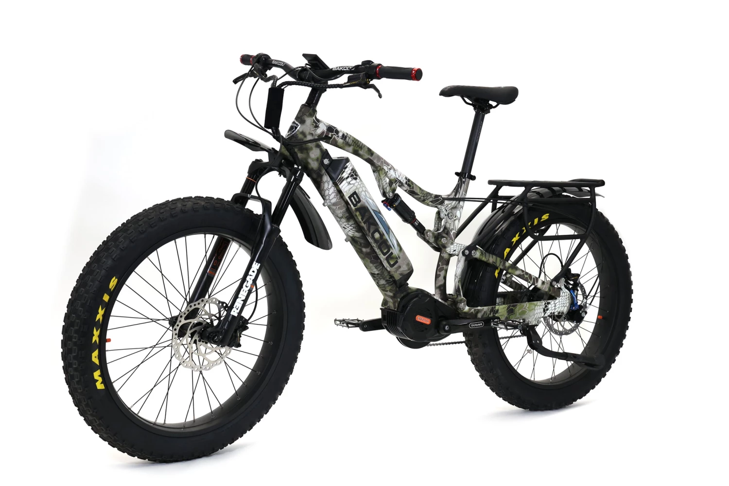 The #1 selling full-suspension, fat-tire eBike, redefined. If it’s gnarly, rugged, steep, or technical, look no further than the full-suspension Storm Jäger. This bike will chew up those rocky climbs and steep descents with ease, while still allowing you to pull that trailer full of gear to and from your tree stand, blind, or favorite hunting spot.