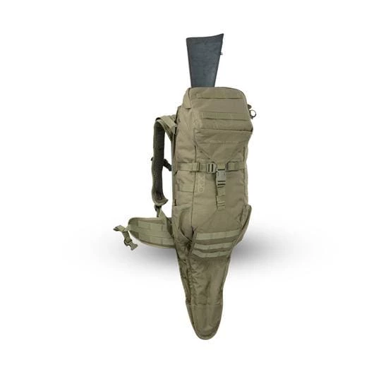 The H2 Gunrunner is a minimalist, lightweight rifle pack with our patented backscabbard. It is designed for hands-free hunting and quick access to your rifle, and has just the right amount of stowage for a day’s outing. The top compartment is a good size for range finders, calls, etc., and the main compartment is sized for a day-outings worth of food and clothing.