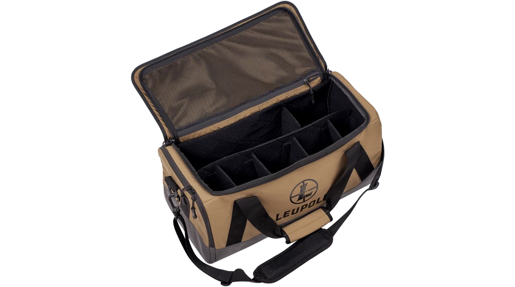 This duffle features 360 degrees of padding, a loop-lined interior, and a set of removable hook-backed dividers to organize your gear. Pack it full, then zip it shut, and you’ll be ready to top the podium on match day, bag a monster in the field, or dominate anything else you’ve got planned for the weekend. On the top of the bag, two tripod attachment straps will hold any Leupold tripod, so you’ll always have one hand free when you’re on the move.