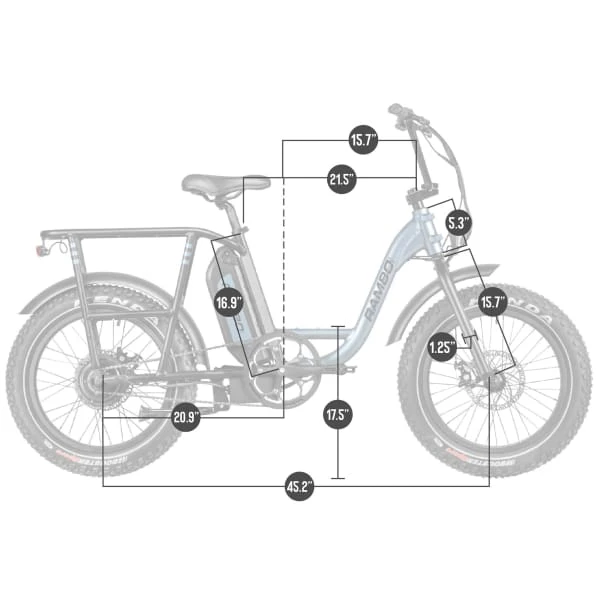Samsung battery cells are one of the most reliable battery cells on the market, they offer an industry leading 800 charging cycle life span. This reliability ensures your bike will be ready when you are, whether it is hunting, weekend riding or daily commuting. The easy slide on/off design allows for quick and easy removal for charging or storage. Rambo’s external battery back offers a max distance of 35 miles! Not all batteries are equal. In fact, not even close. Many e-bikes that are advertised on the market today at a certain amp hour fall very short. Real life tests show Rambo outperforms again and again! Don’t be fooled for less the than best!